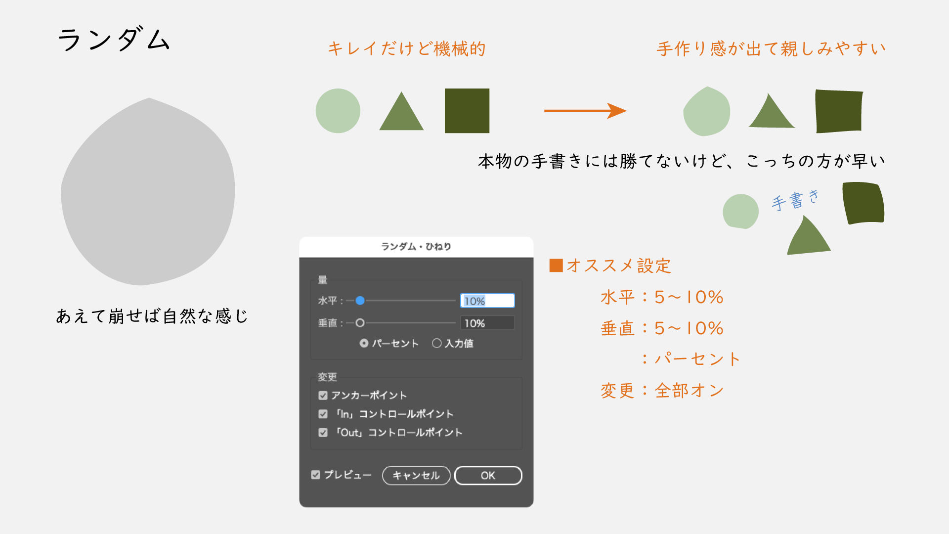 ランダムは形をあえて崩して自然な感じを演出できる効果です。