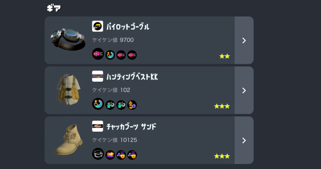 - イカ速:敵との距離感が重要なので、立ち回り全体の安定性を高める万能ギア。
